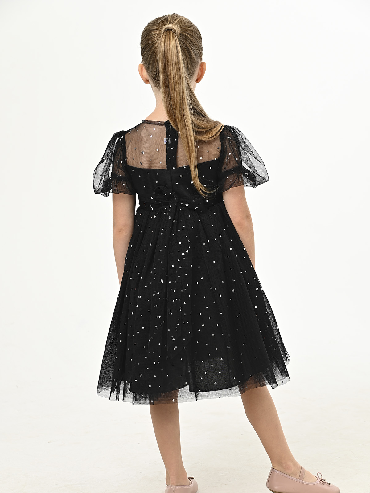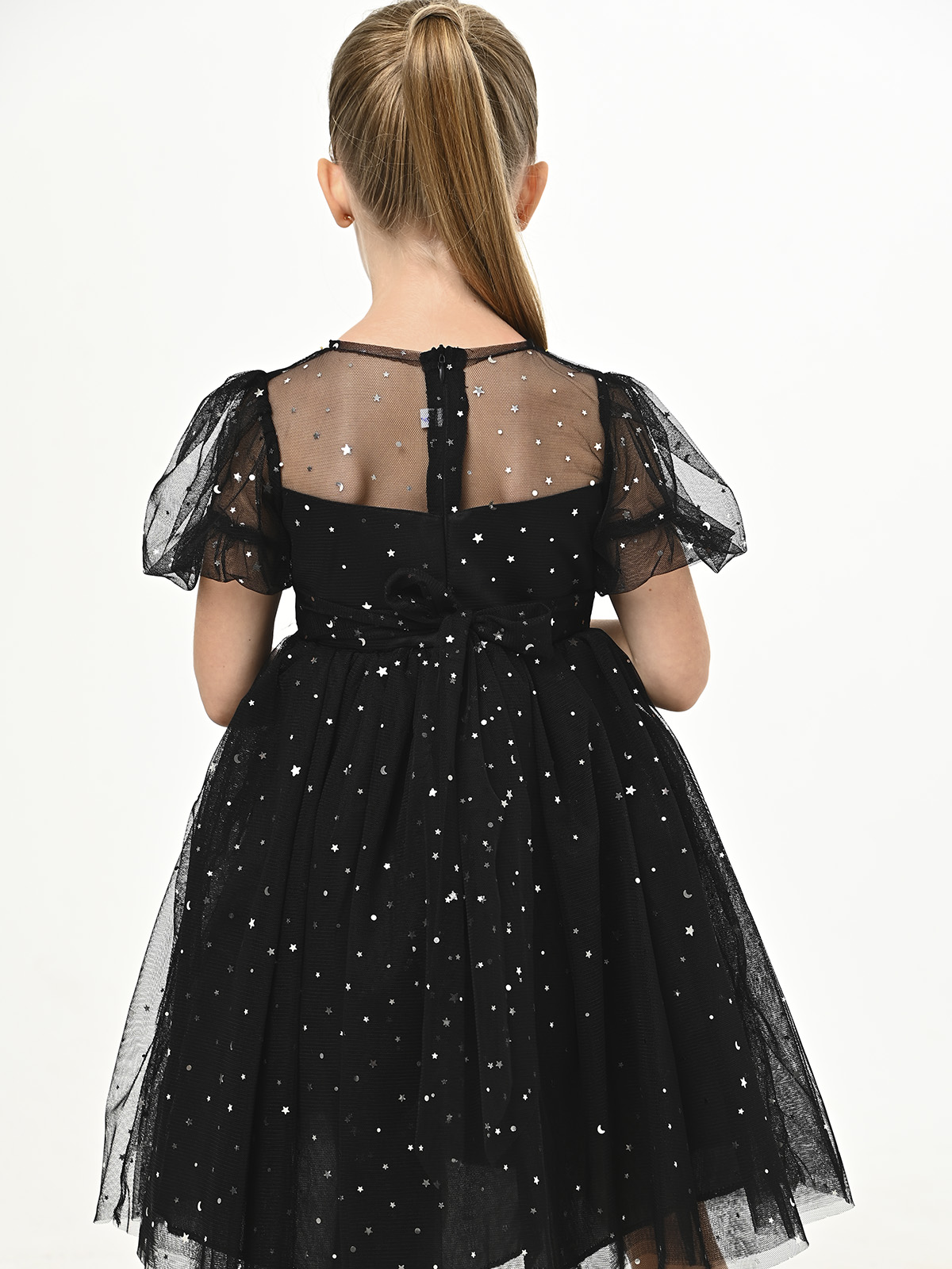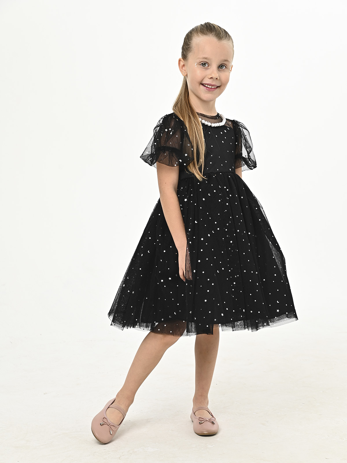 • Объемная, пышная, многослойная юбка из фатина с элементами в виде звезд, месяцев и горошка