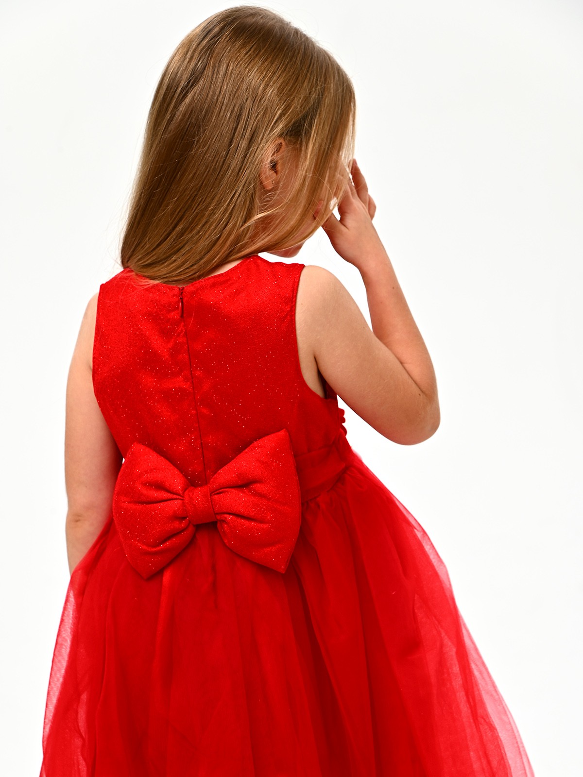 • На спине находится аккуратная, потайная молния и бант, который при необходимости можно отстегнуть
