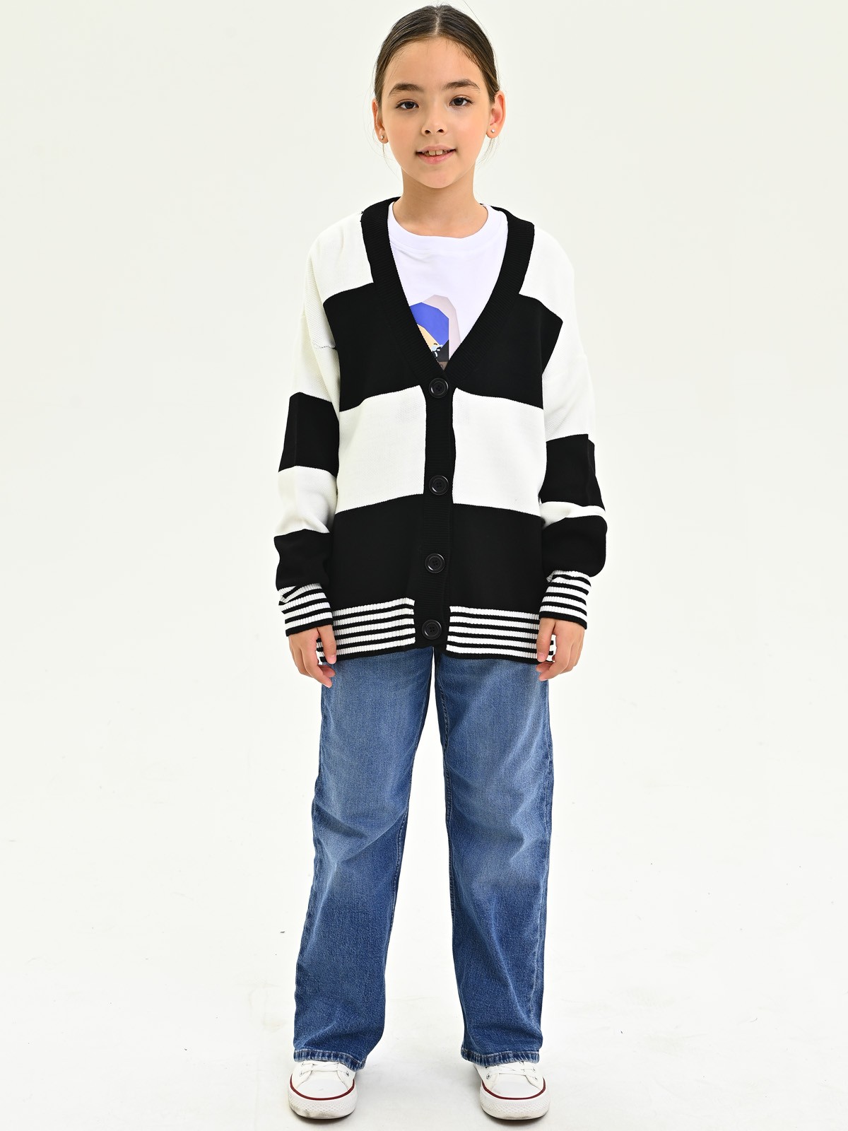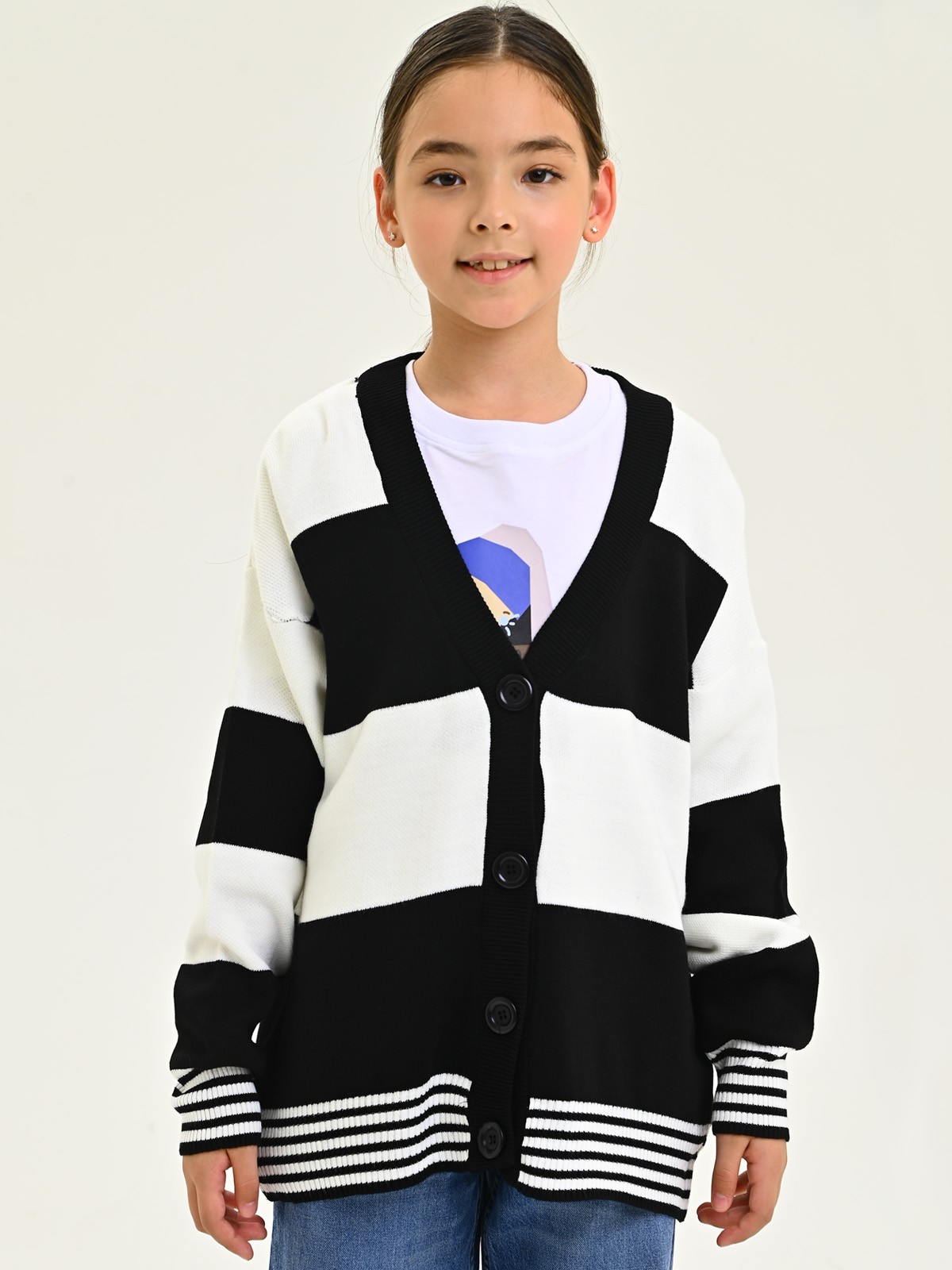 202206 Кардиган д/д (белый,черный 164)