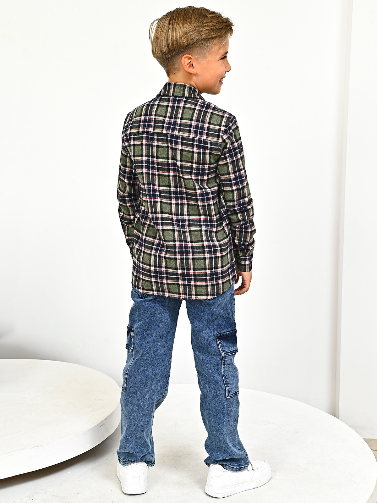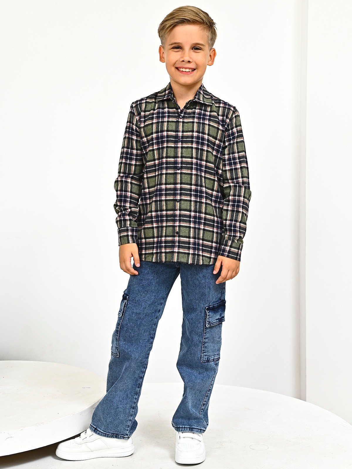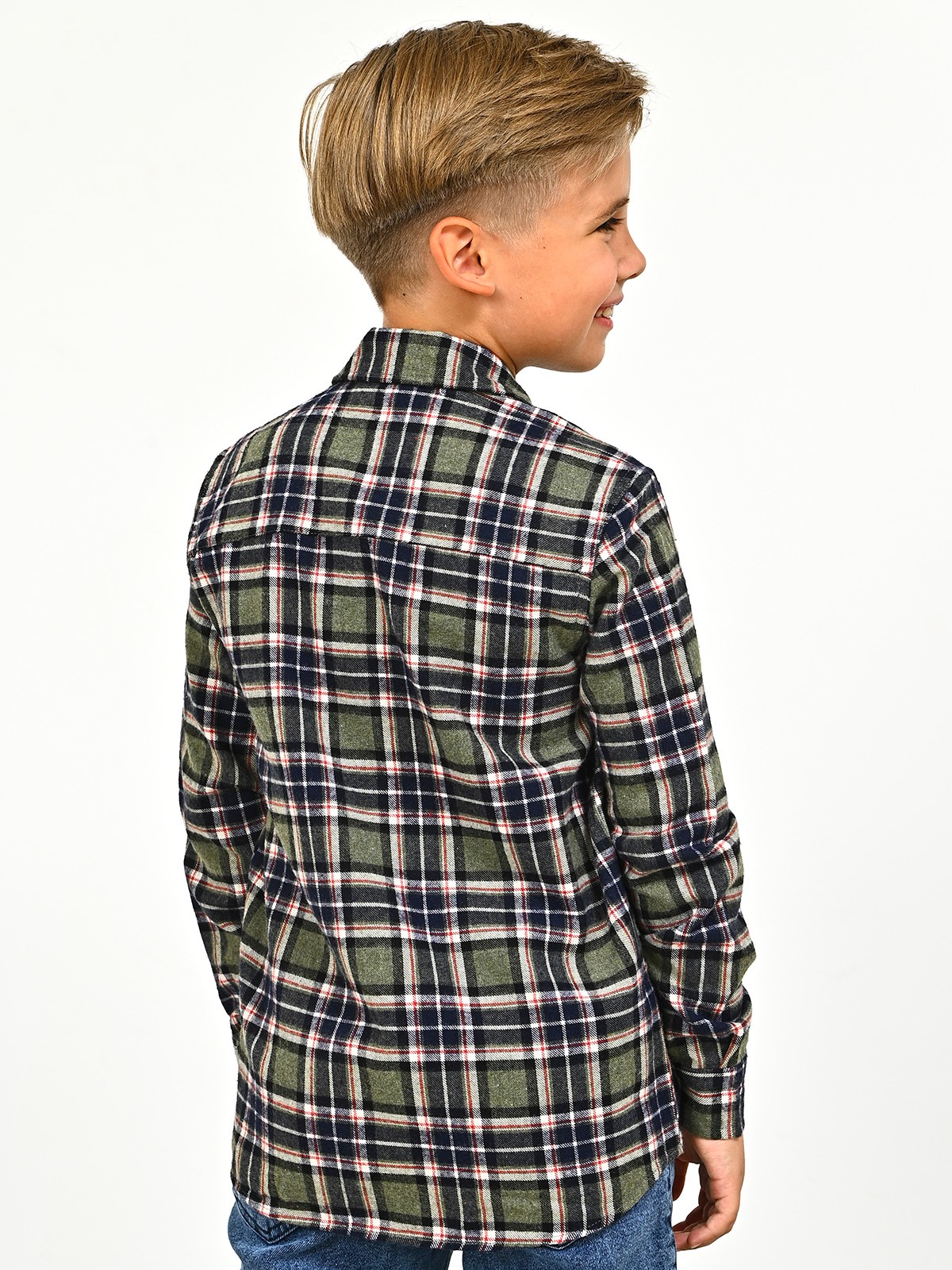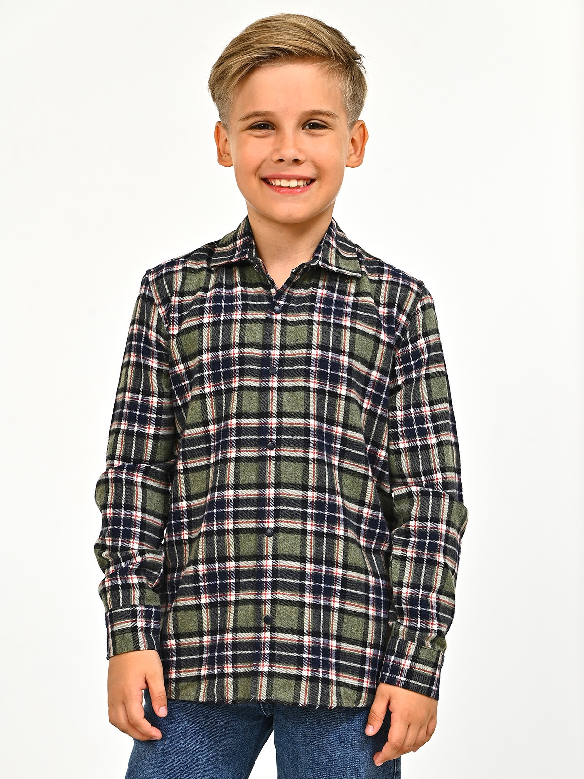 2709 Рубашка д/м клетка (зеленый весь размерный ряд)