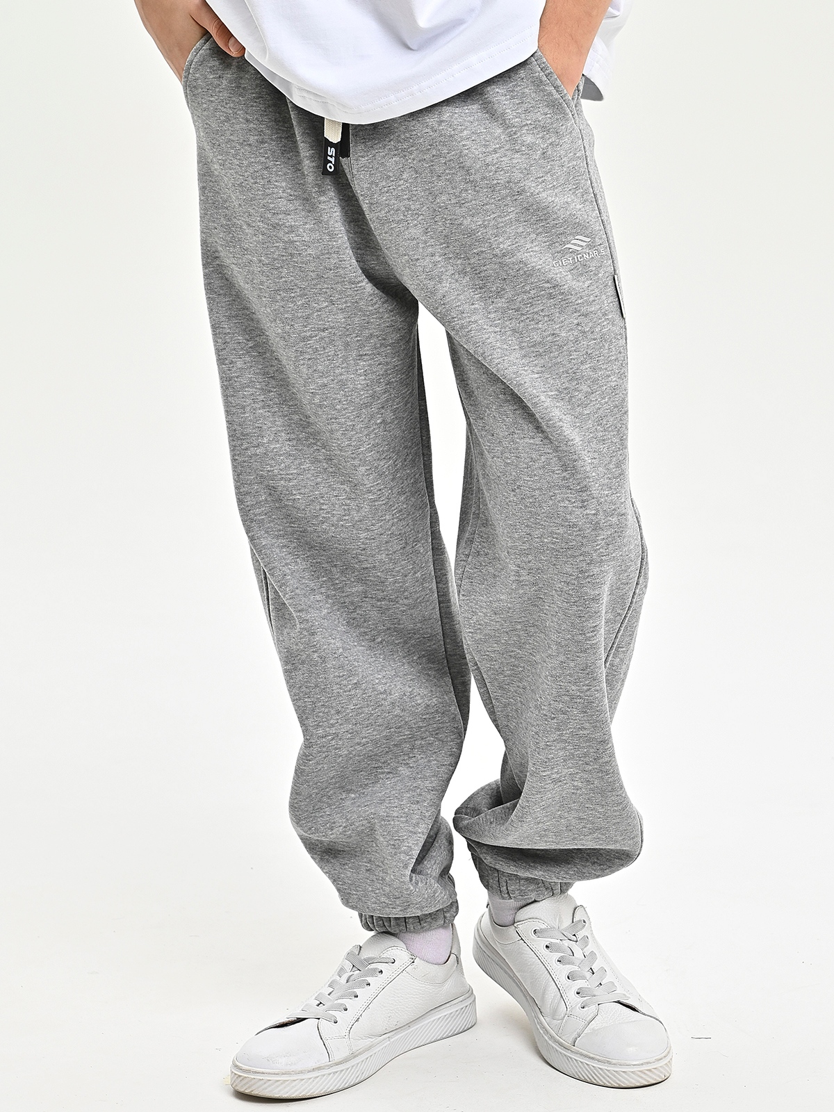 B033-8-Ch Брюки спорт утепл. д/м (серый меланж весь размерный ряд)