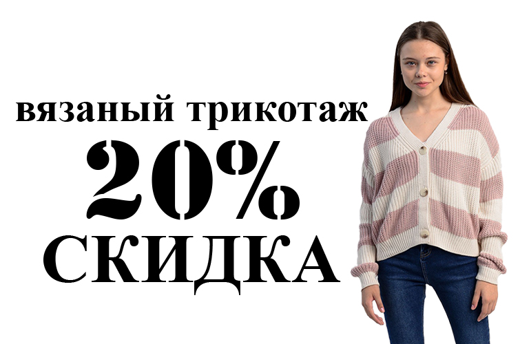 Скидка 20% на вязаный трикотаж